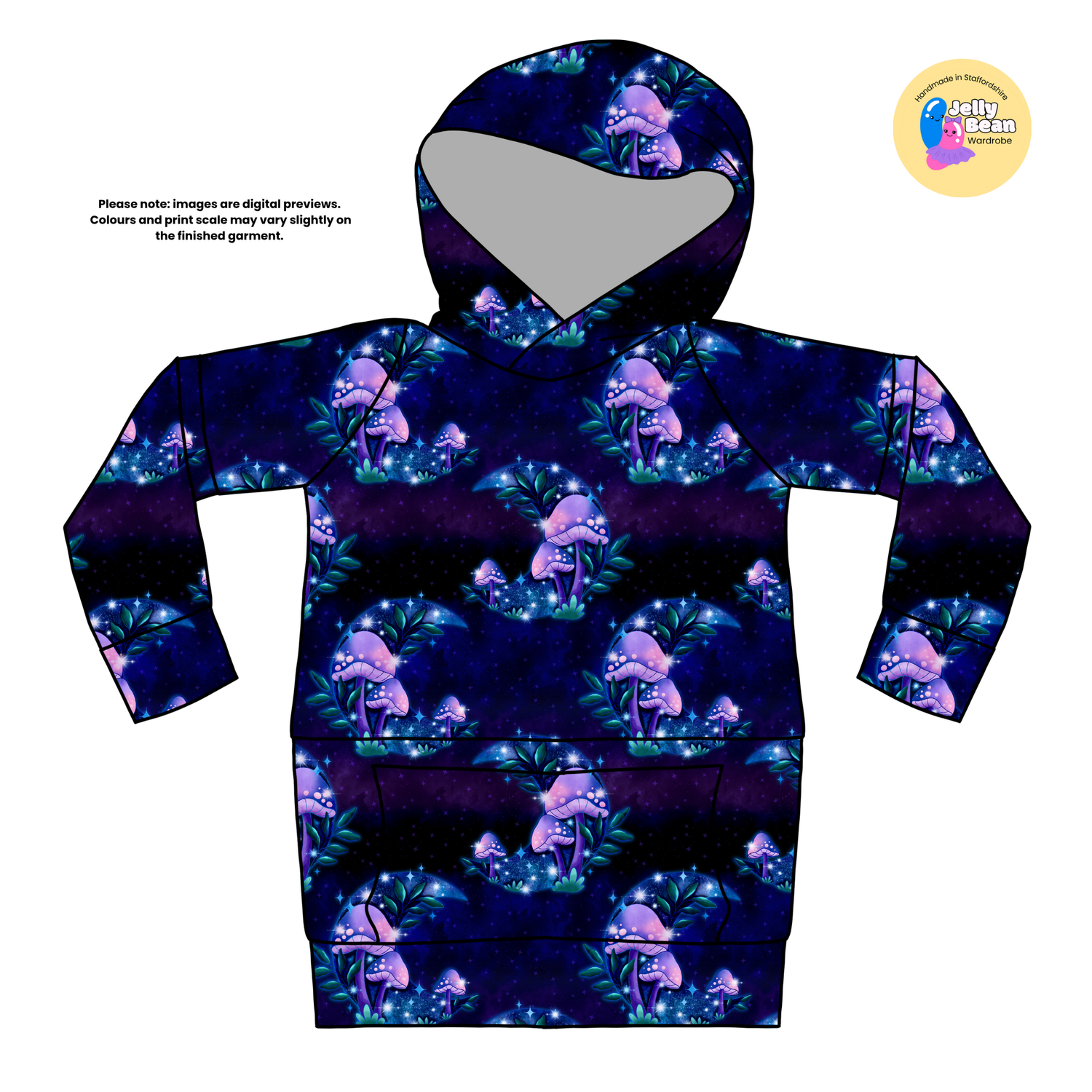 A cosy oversized hoodie in our Magical Mushroom Moon print.
