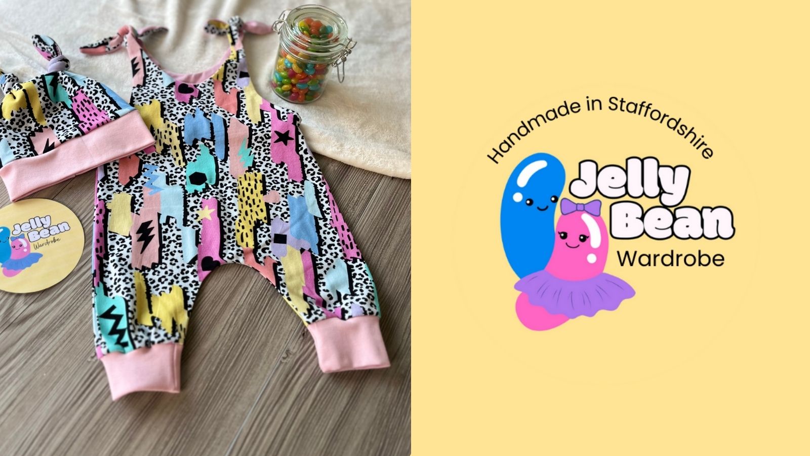 Welcome to Jelly Bean Wardrobe, a Staffordshire-based handmade children’s clothing brand full of colour, comfort and creativity.