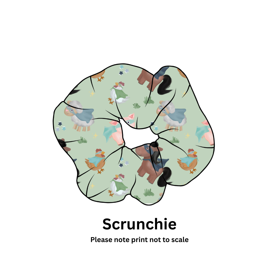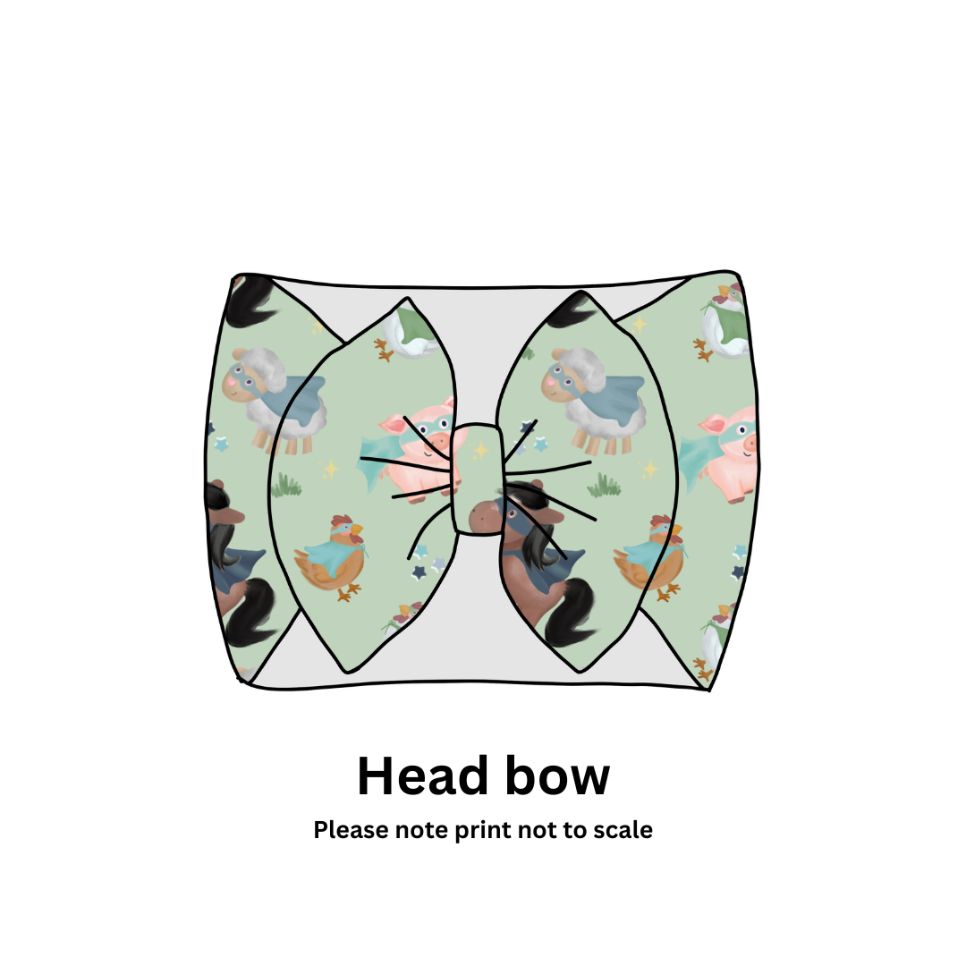 Meet the bravest bunch on the farm! Farmyard Heroes is a Jelly Bean Wardrobe exclusive, featuring a crew of caped critters ready to save the day – from galloping ponies to flying pigs, heroic hens, and daring ducks. Set on a soft sage green background, this one-of-a-kind print turns every outfit into a little adventure.