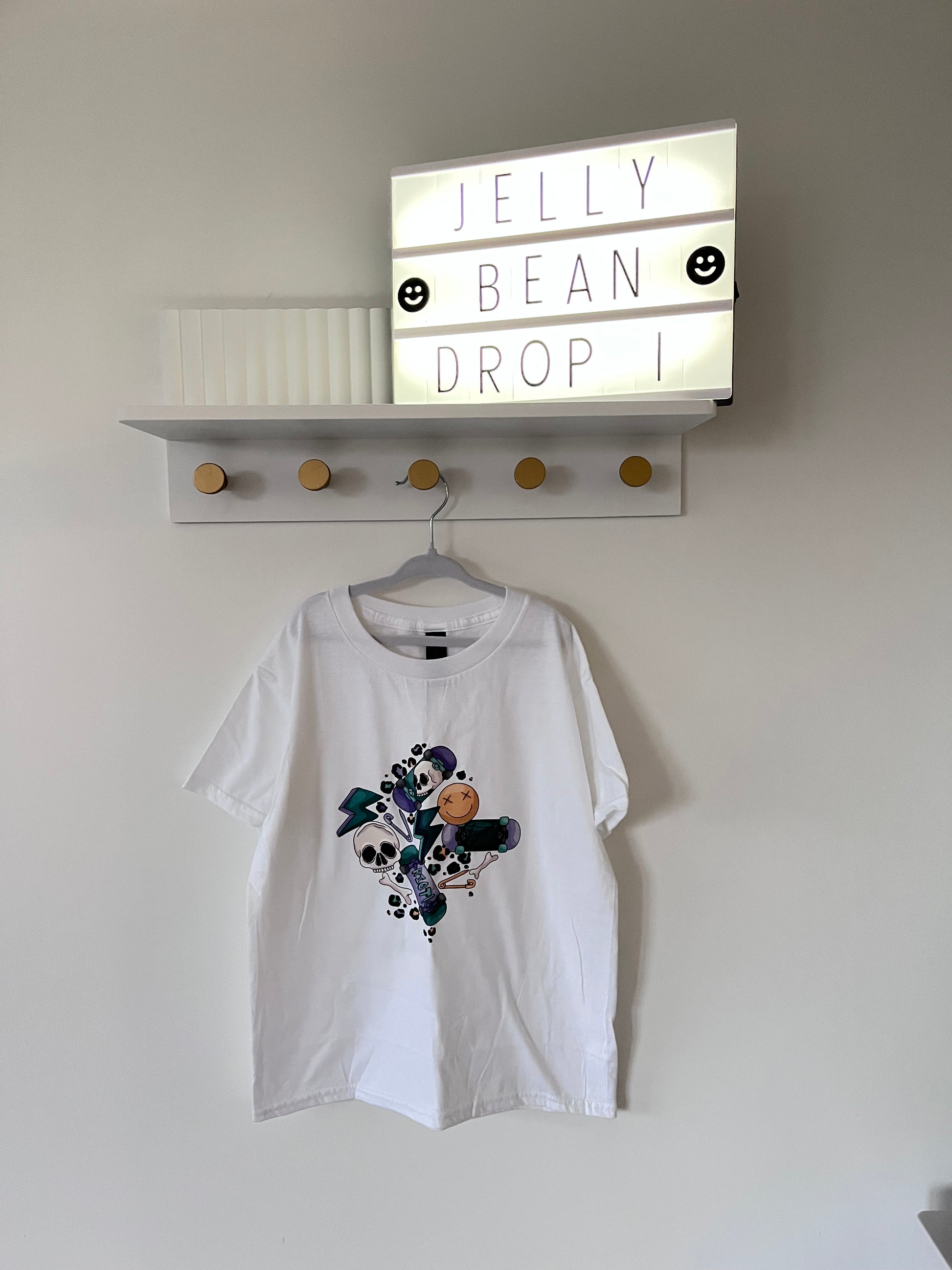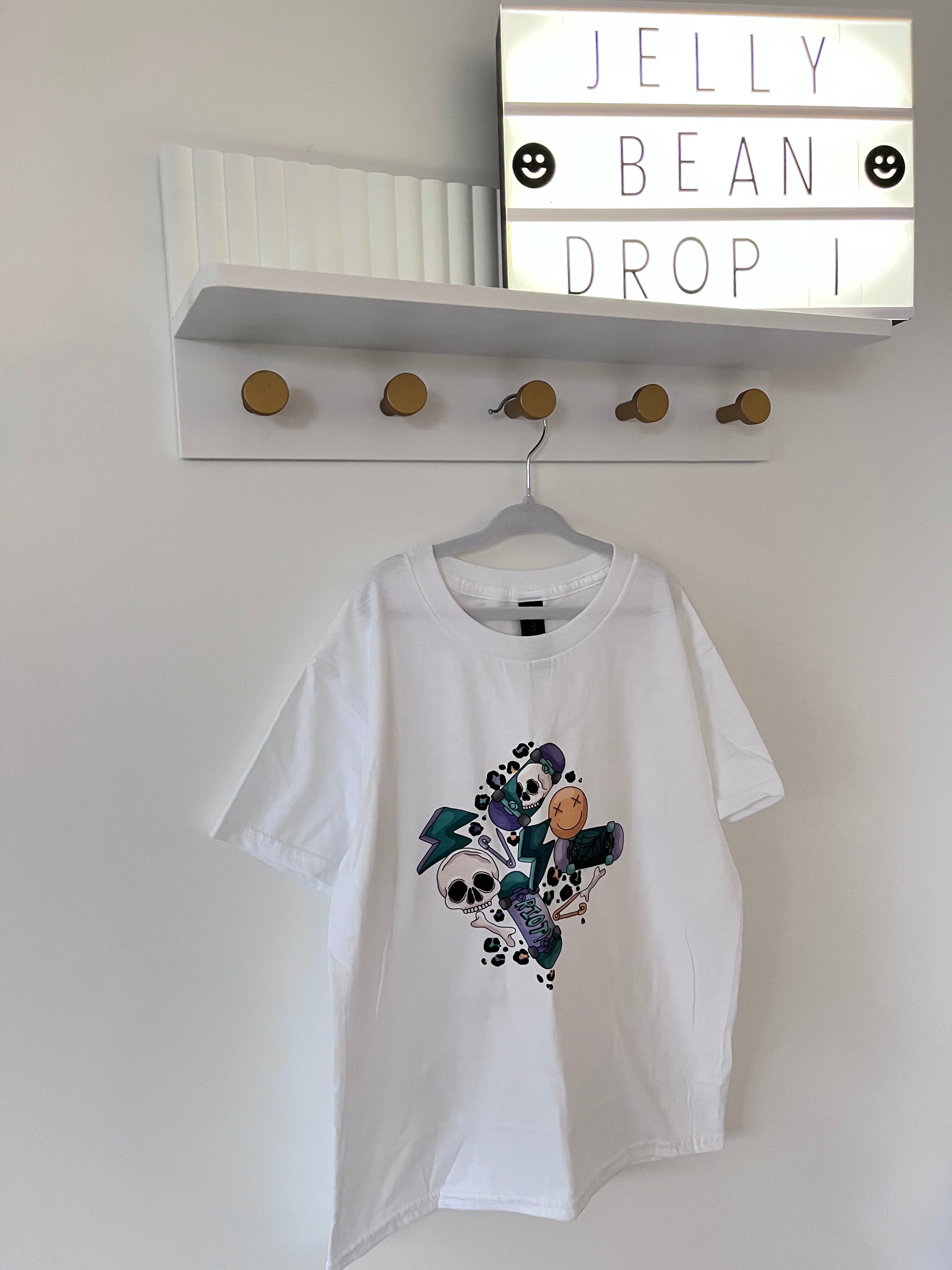 Our Skater and Skulls T-Shirts are designed to pair perfectly with our handmade Jelly Bean Wardrobe pieces.